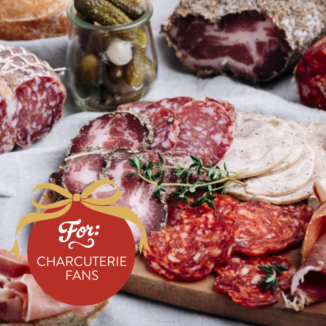 Un plateau en bois local du Jura, garni de spécialités régionales : miel du Jura ou du canton de Vaud, Gruyère, Vacherin, vin de La Côte ou du Valais, viande séchée IGP, et même une excellente absinthe du Val-de-Travers. Disponible chez Brumann Viande Séchée à Sierre.