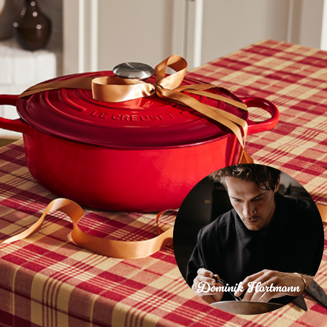 "Une cocotte est le cadeau parfait ! Les plats mijotés sont sous-côtés, alors qu’ils permettent de révéler et sublimer la saveur de nombreux légumes et viandes… Une cocotte peut même cuire du pain ! C'est, selon moi, un indispensable en cuisine." - Dominik Hartmann.